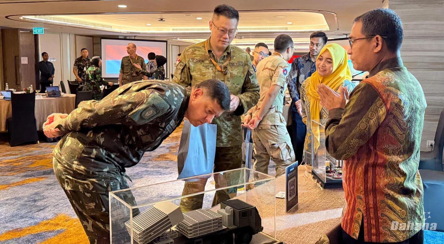Dalam pameran yang diikuti oleh Holding BUMN DEFEND ID dan industri pertahanan lainnya, atase pertahanan dari berbagai negara berkesempatan menyaksikan langsung kapabilitas produk DAHANA dan berdiskusi mengenai potensi kolaborasi, baik dalam bentuk kerja sama strategis maupun potensi pengembangan teknologi bersama.