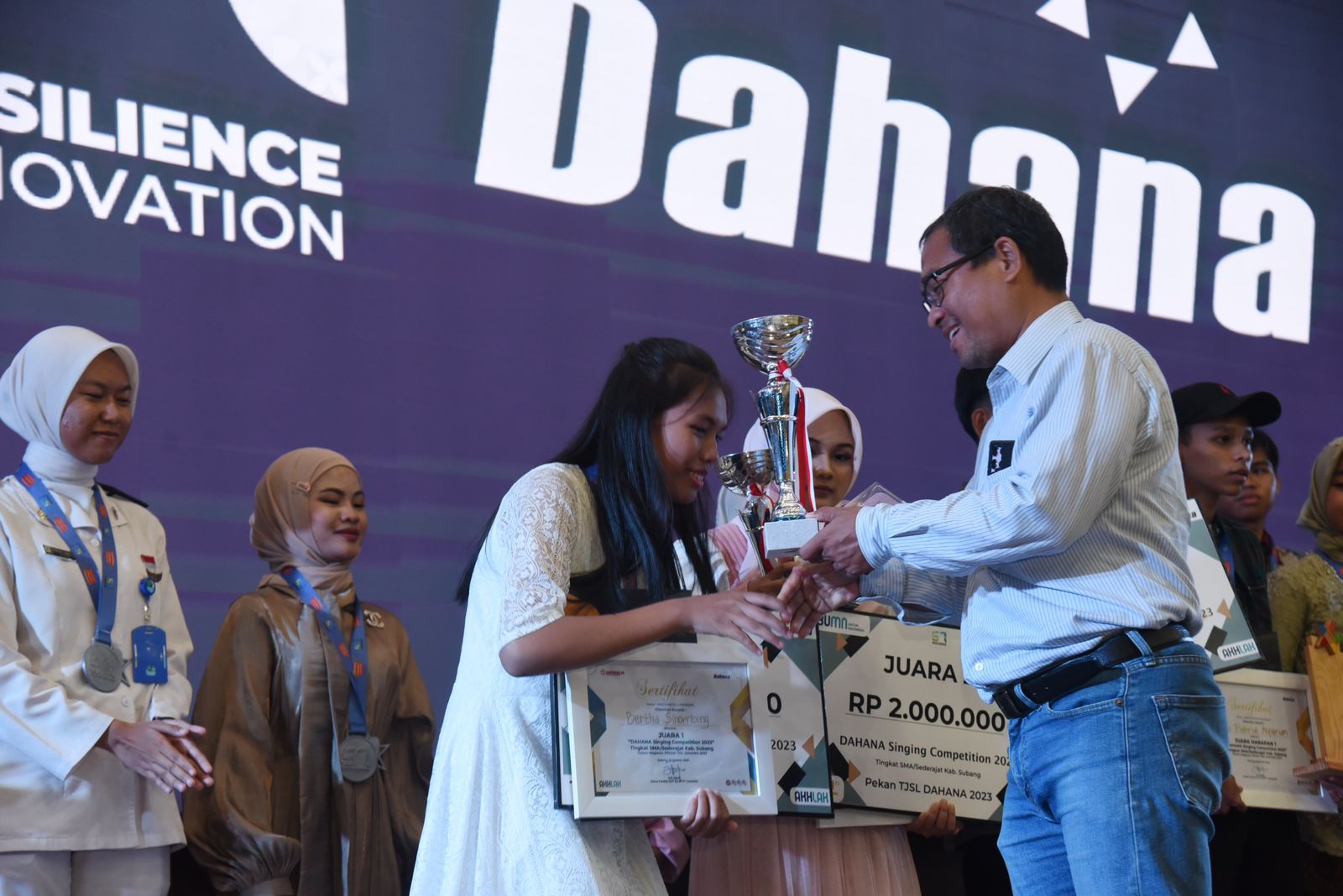 Gelaran DAHANA Singing Competition 2023 telah sampai ke puncak acara dan mendaulat Bertha Sihombing dari SMAN 3 Subang sebagai Juara. Bertha Sihombing berhasil tampil memukau dengan menyanyikan lagu wajib Sang Dewi dan lagu pilihan My Heart will Go On melampaui kontestan lainnya pada babak Spectacular Show yang dihelat pada 19 Oktober 2023, di Auditorium Kampus DAHANA, Subang.